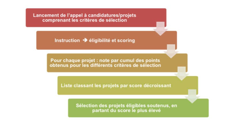 6-Sélection des projets éligibles soutenus, en partant du score le plus élevé.